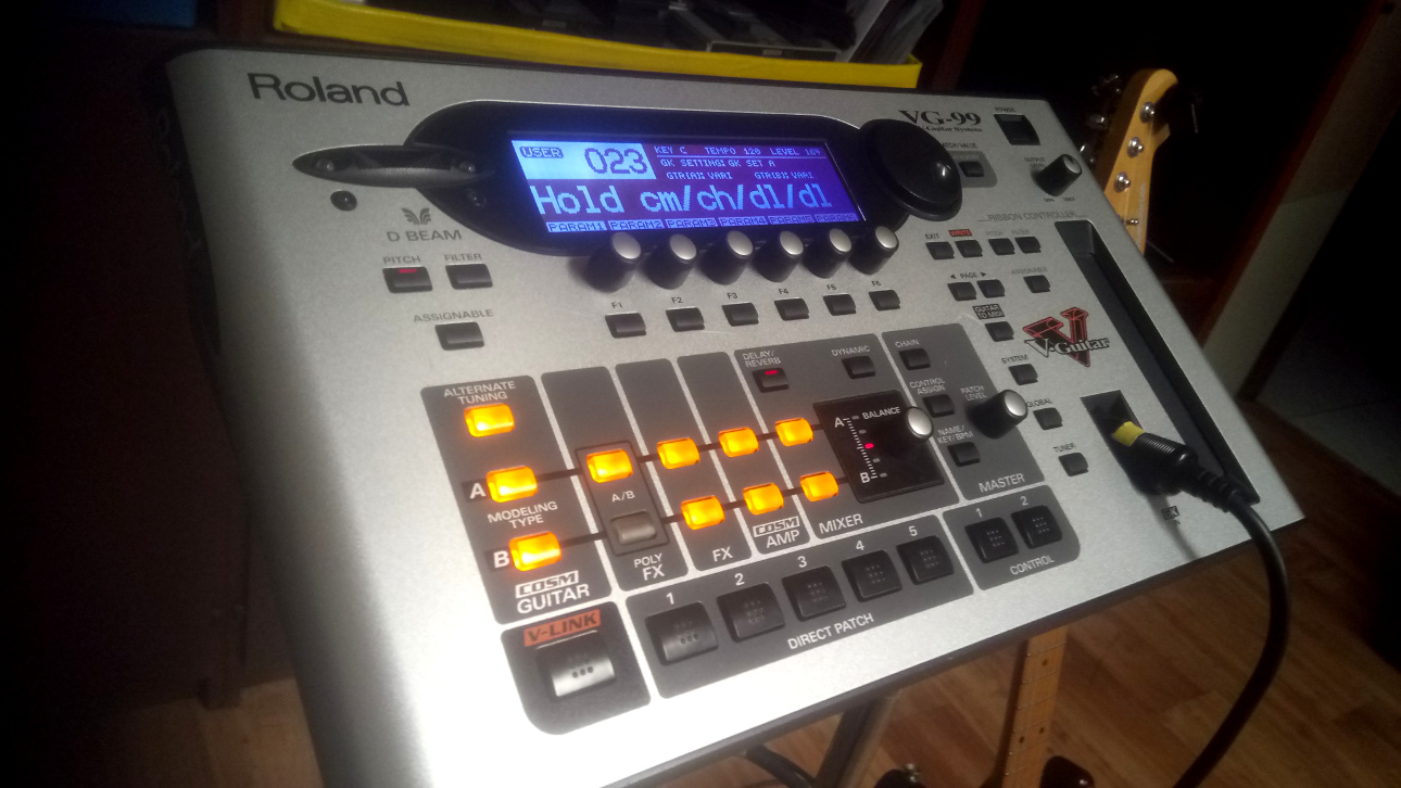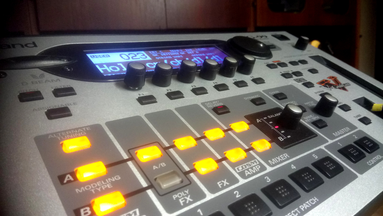 A tu je už opravená VG-99-tka (vymenený encoder). Nakoniec som objednal cez španielsku stránku E-Bay a šlo to. Jediná maličká drobnosť je, že je oska toho nového encodéru o pár milimetrov dlhšia a tak tento trochu prečnieva oproti ostatným (viď stredný obrázok vo vrchom rade galérie).